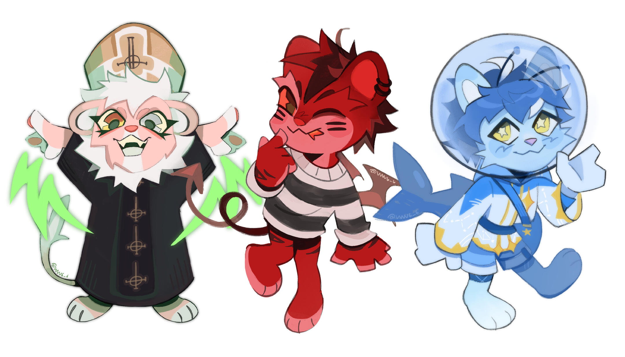 TYPE A - 35 USD which includes: fullbody, a headshot, name + whatever extra info you wanna add. All flat color.TYPE B - 50 USD which includes: fullbody, mirrored fullbody, 2 headshots, name + any extra info you want to add. All flat color.EXTRAS: